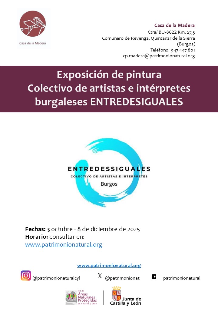 El colectivo de artistas e intérpretes burgaleses ENTREDESIGUALES, nos cede una exposición conjunta de pintura, fotografía y artes plásticas, que podrá ser visitada en horario de apertura de la Casa de la Madera hasta el próximo día 8 de diciembre