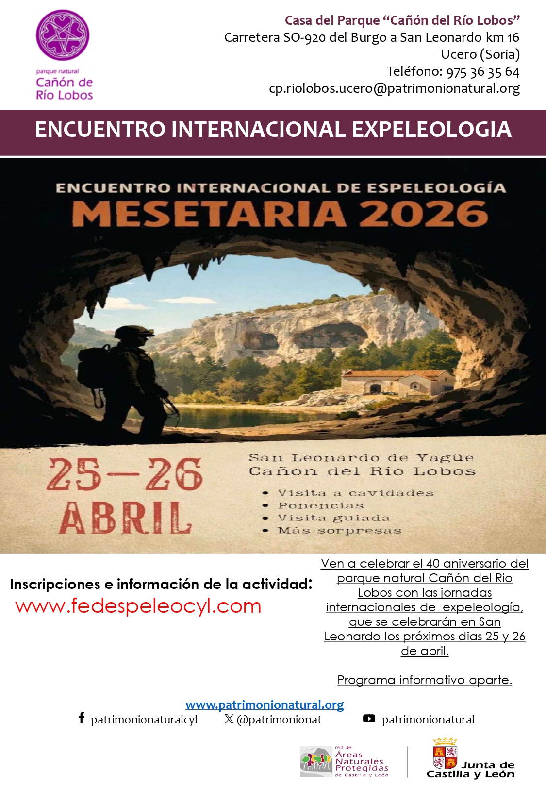 - Lugar: Casa del Parque del Cañón del Río Lobos